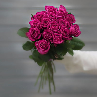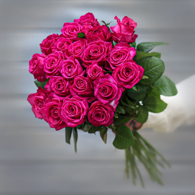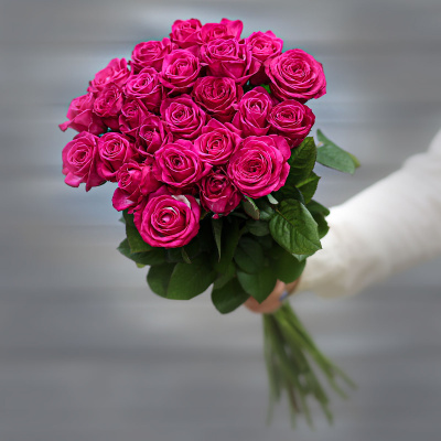 Букет из 23 малиновых роз (Россия) с лентой 60 см| 4 700 Р | без скидки |