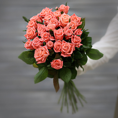 Букет из 21 коралловой розы (Россия) с лентой 60 см| 4 600 Р | без скидки |