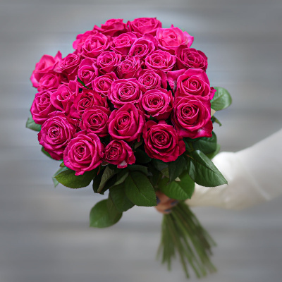 Букет из 31 малиновой розы (Россия) с лентой 60 см| 5 500 Р | без скидки |