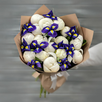 Букет из белых пионов и ирисов| 13 200 Р | без скидки |