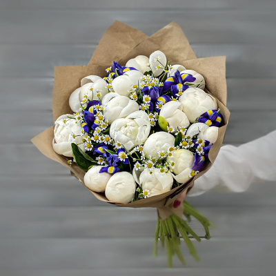 Букет из пионов, ирисов и ромашек| 13 700 Р | без скидки |