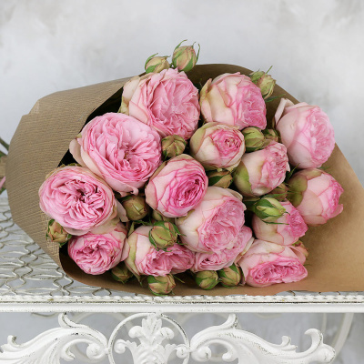 15 нежно-розовых пионовидных роз в крафте| 10 100 Р | без скидки |