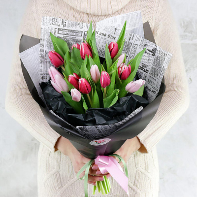 Букет из 15 розовых и малиновых тюльпанов| 3 900 Р | без скидки |