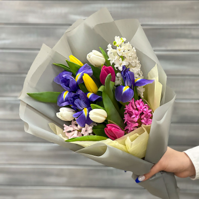 Букет из тюльпанов, ирисов и гиацинтов| 4 000 Р | без скидки |