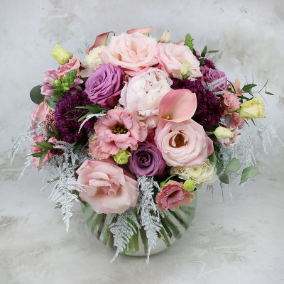 Букет из лизиантуса, роз и калл| 18 300 Р | без скидки |