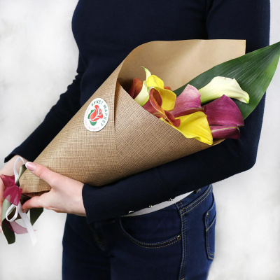 Букет из 9 калл и листьев аспидистры в крафте| 4 700 Р | без скидки |